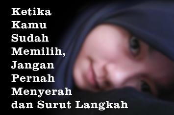 Hidup tak selamanya mulus. Begitupun dengan pilihan yang telah kau ambil. Selalu ada batu kerikil yang mencoba menghalangi langkahmu untuk meraih tujuan. Jangan menyerah! Yang namanya batu kerikil itu kecil. Jiwamu yang besar pasti akan mampu meminggirkan si kerikil dari jalan cita-citamu. Jangan cengeng! Sungguh malu sekali bila hanya dengan sebutir kerikil kamu memutuskan surut langkah dan berputar mencari jalan lain yang masih belum jelas arah dan tujuannya.