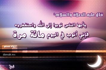 يَا أَيُّهَا النَّاسُ تُوْبُوْا إِلَى اللهِ فَإِنِّيْ أَتُوْبُ فِي الْيَوْمِ إِلَيْهِ مِائَةَ مَرَّةٍ